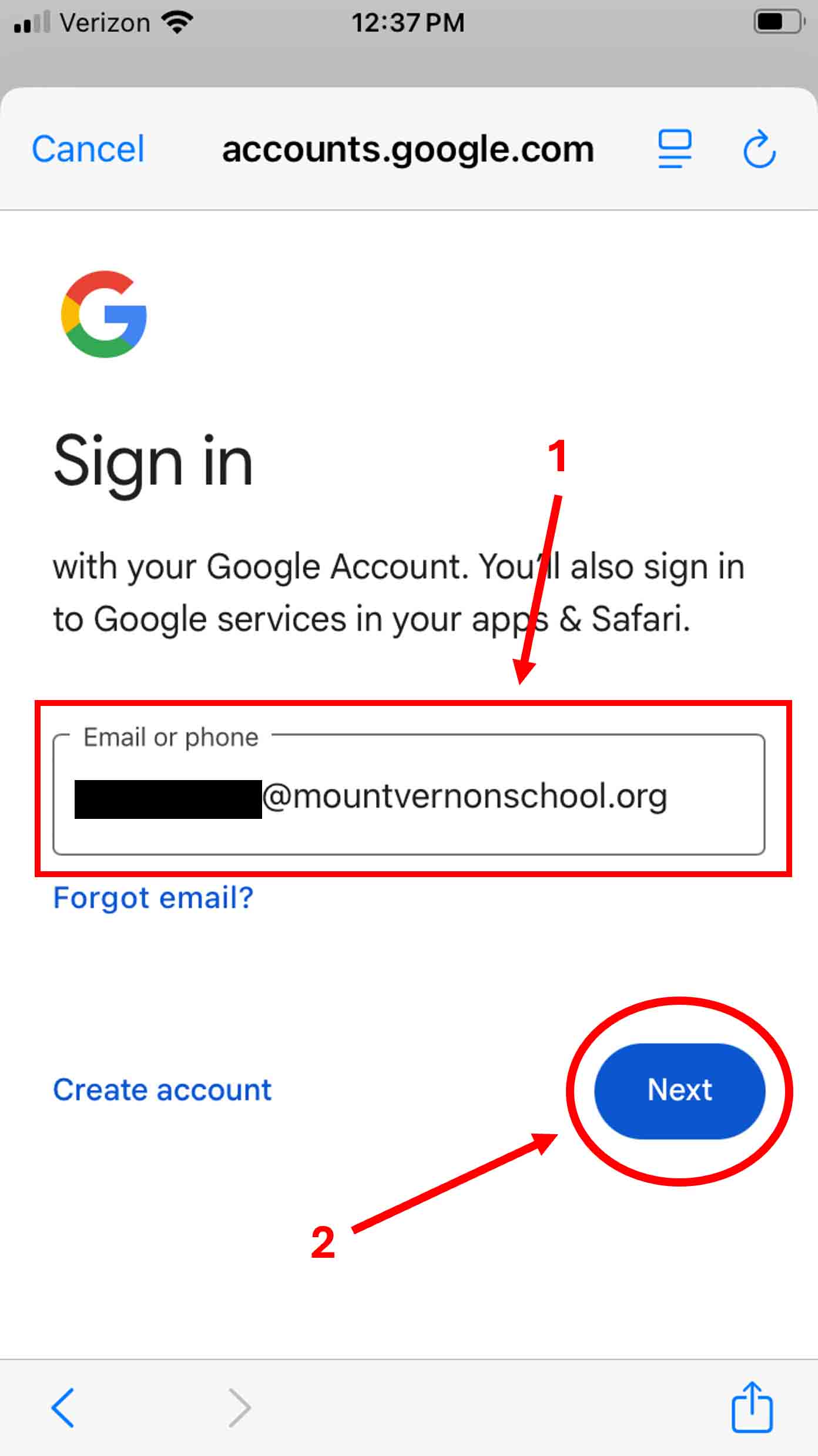 - Enter your Mount Vernon email and click Next