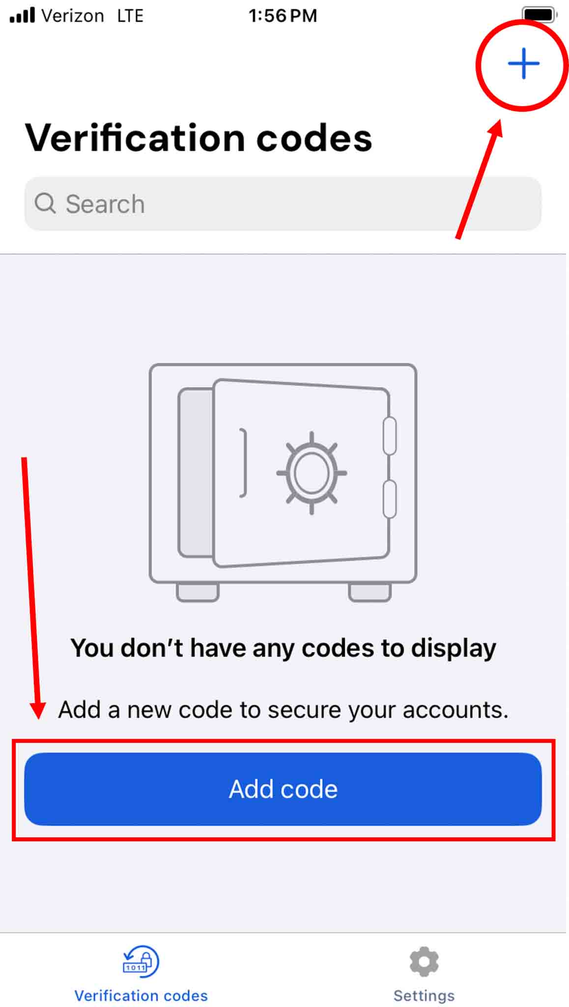 - A QR Code will appear in a window. On your smartphone in the Bitwarden Authenticator App, click the + button at the top-right (or the Add Code button)