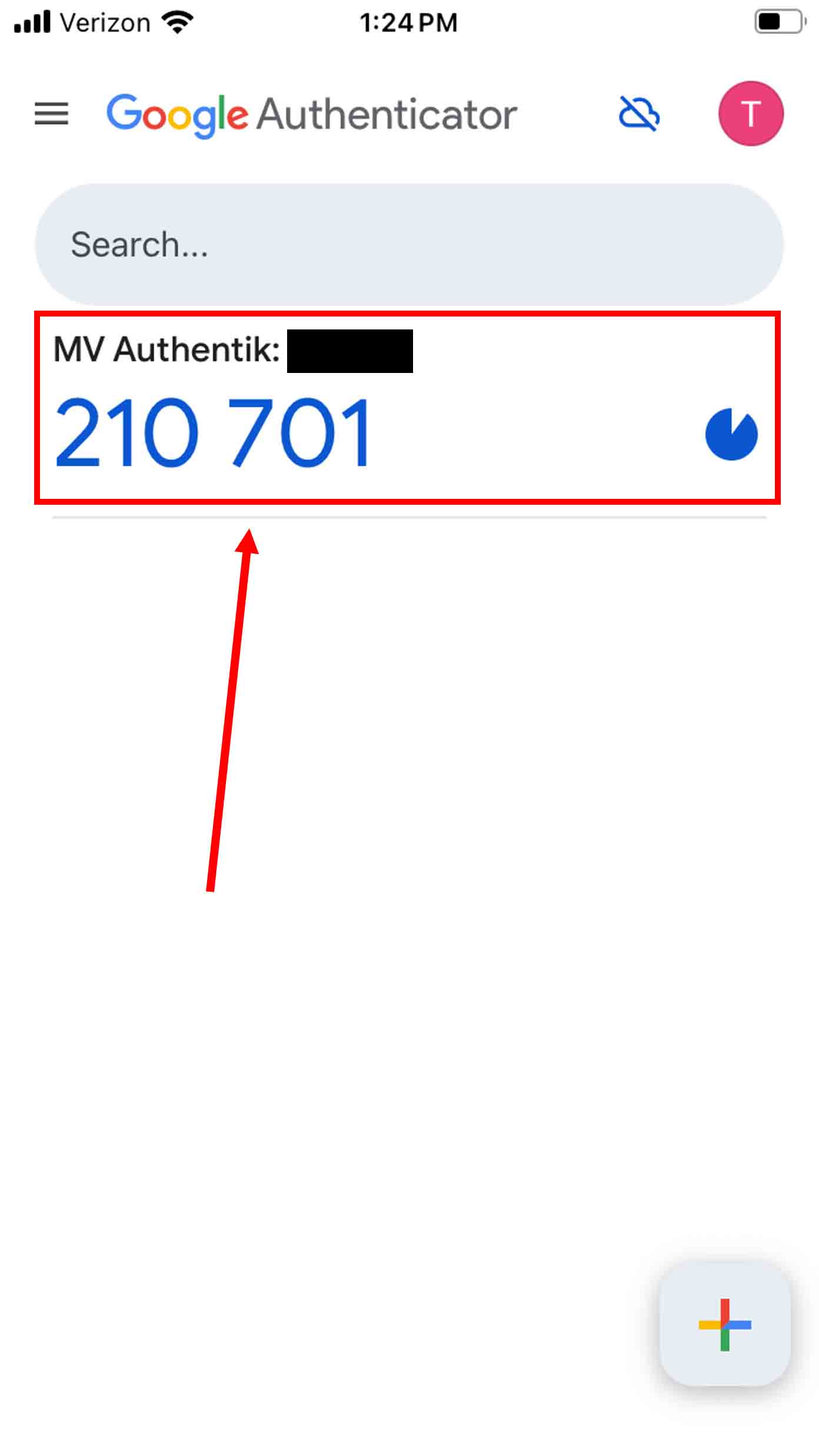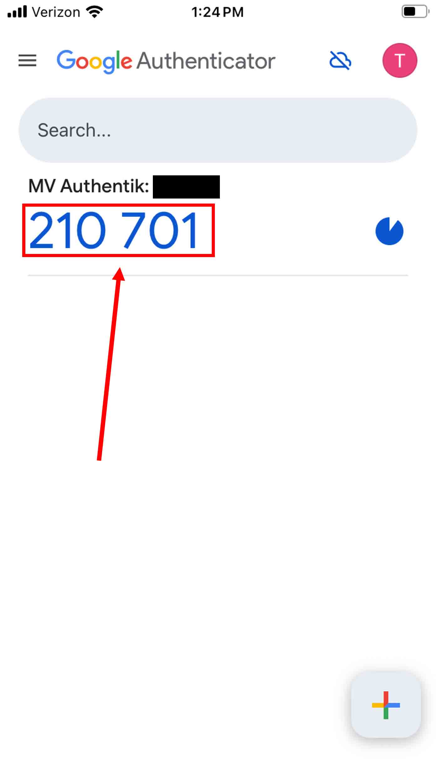 - Find the entry that you created when setting up multi-factor authentication on your Mount Vernon Single Sign-On account