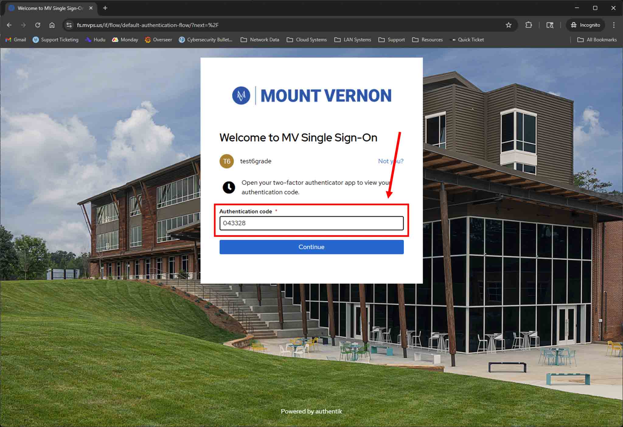 These are instructions on how to log into your Mount Vernon Single Sign-On account in Authentik that has multi-factor authentication (MFA/2FA) enabled on it.