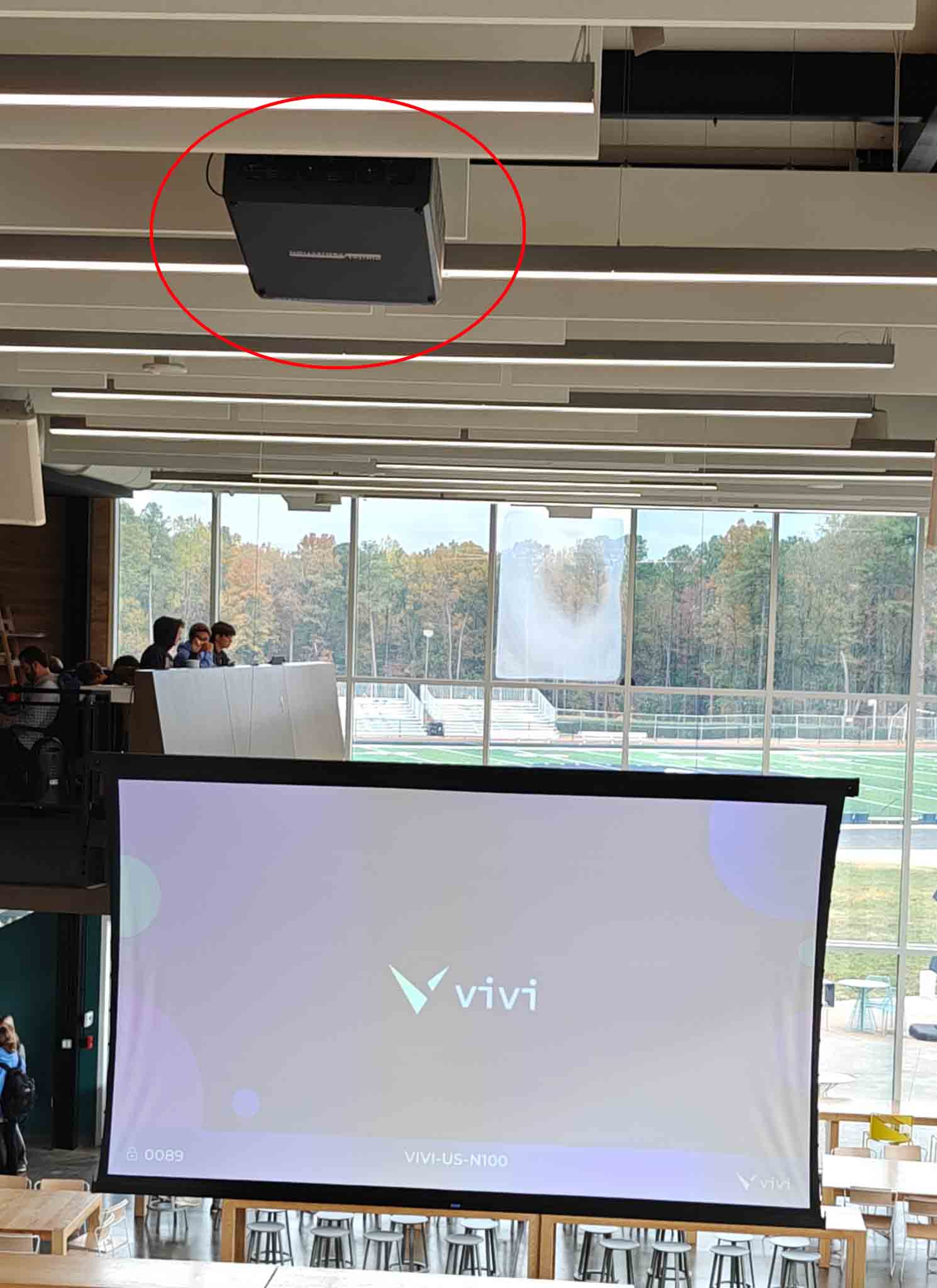 - When the projector has powered on, it should automatically be on the Vivi splash screen