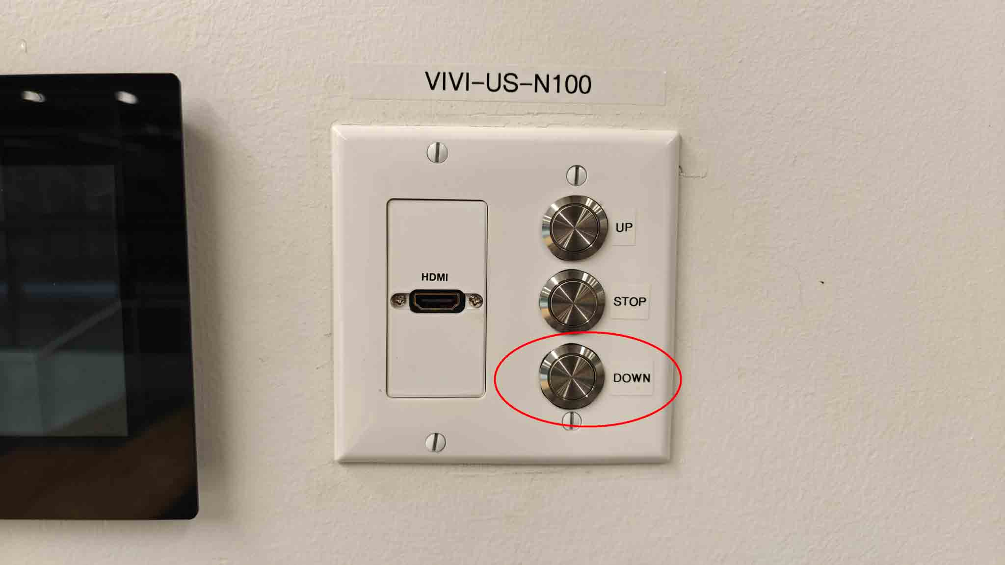 - Momentarily push the DOWN button on the wall panel to lower the screen