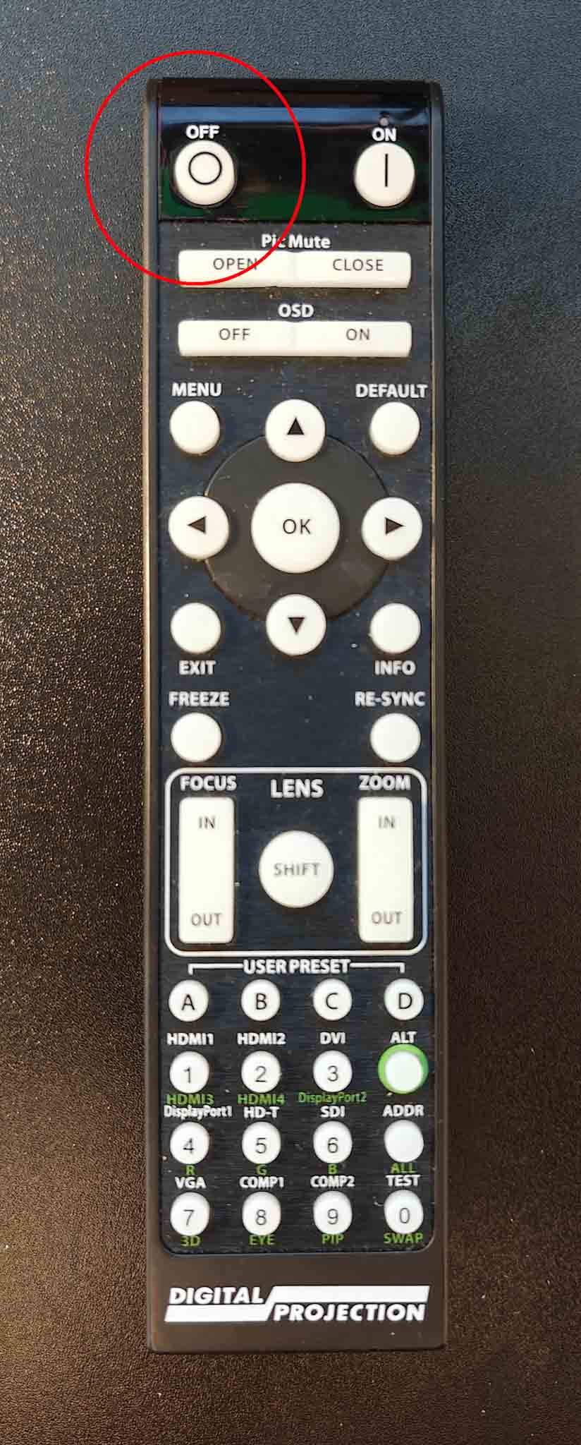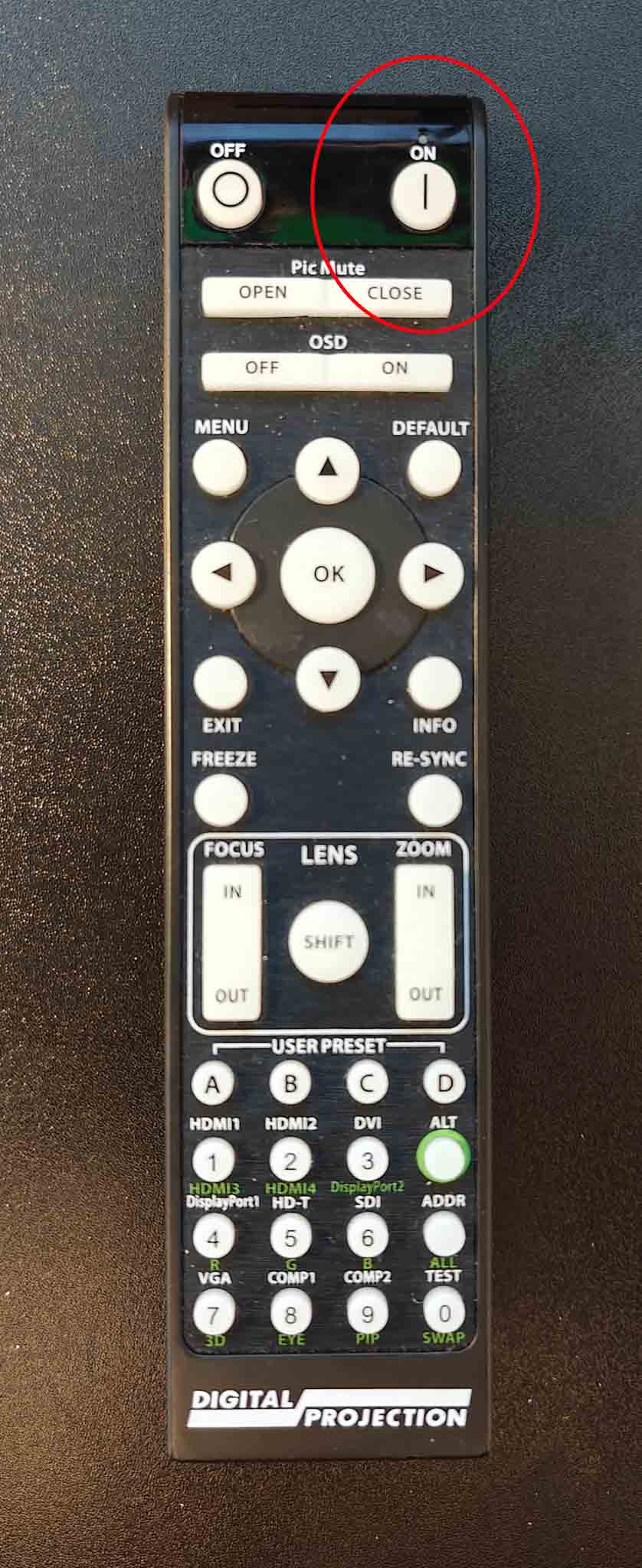 You may need to move around the area, keeping the remote pointed at the projector, in order to get the signal from the remote to reach the projector - IMPORTANT: Return the projector remote to the Upper School front desk
