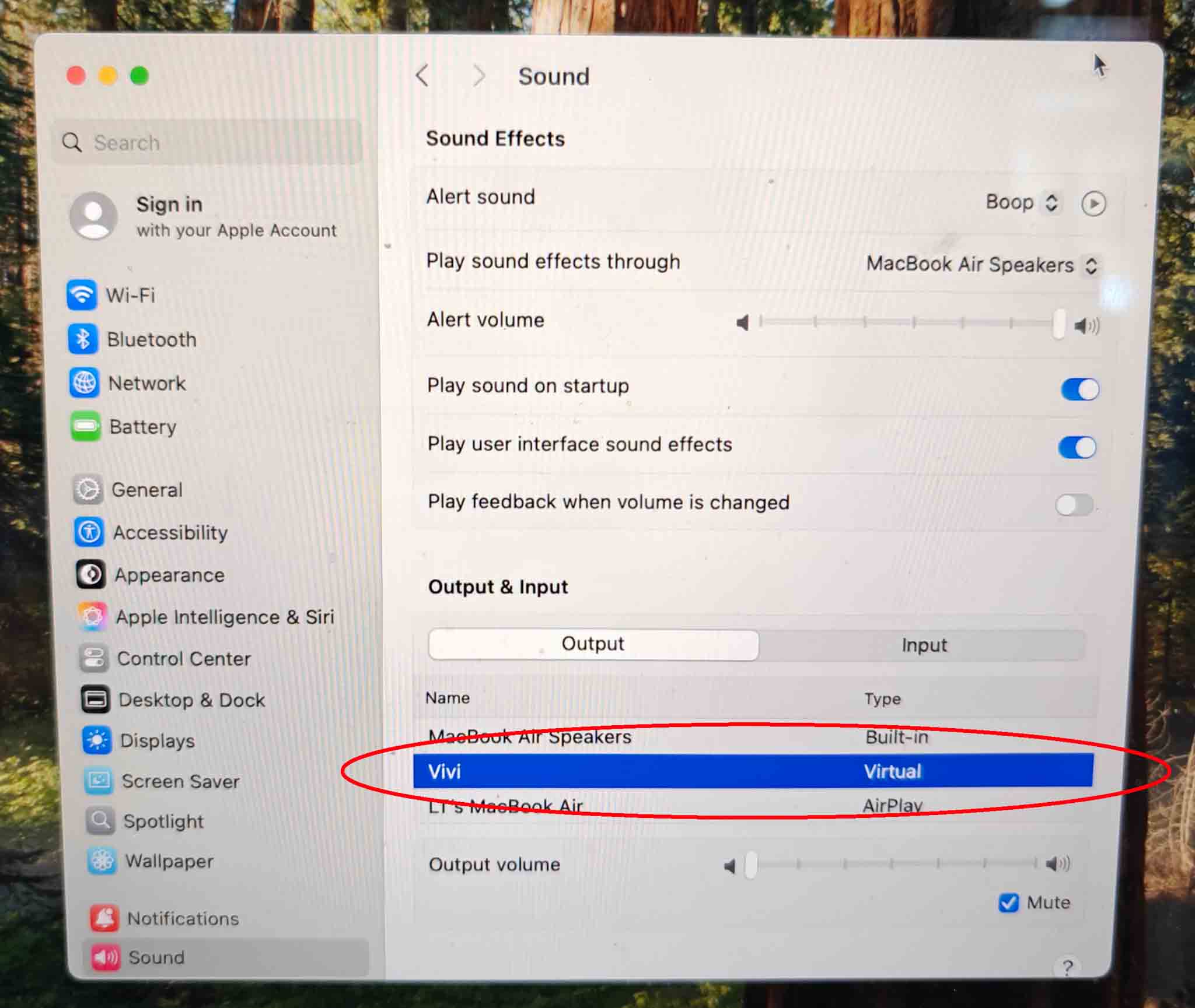 If you are presenting your content over the Vivi: ensure that your computer's sound output is set to the Vivi virtual device on the output selector in your computer settings.